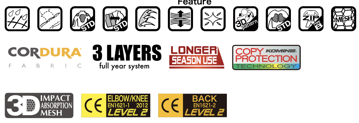 It features CE-certified protectors on the shoulders, elbows, and back. The inside of the back is equipped with 3D mesh for airflow.