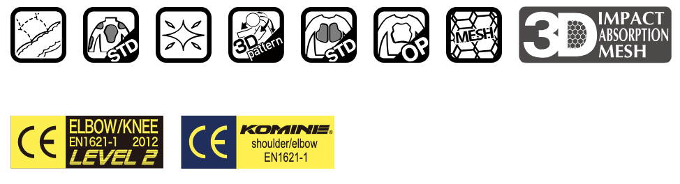(Patent No. 6456099) CE-certified Level 2 protectors (WM-WL) are standard equipment (shoulders / SK-812, elbows / SK-811)